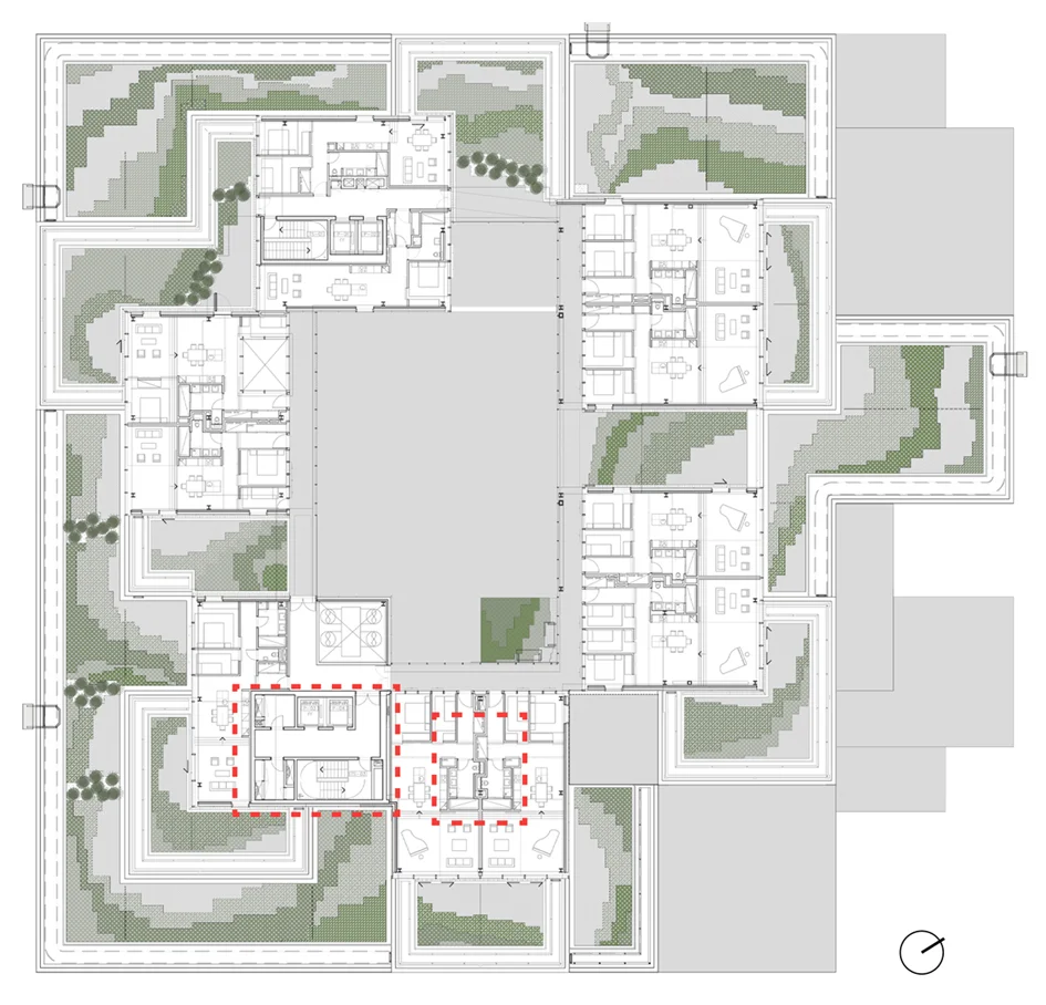 Fit-out plans / Level 5. General plans and execution drawings of the 22 apartments on the top floors.